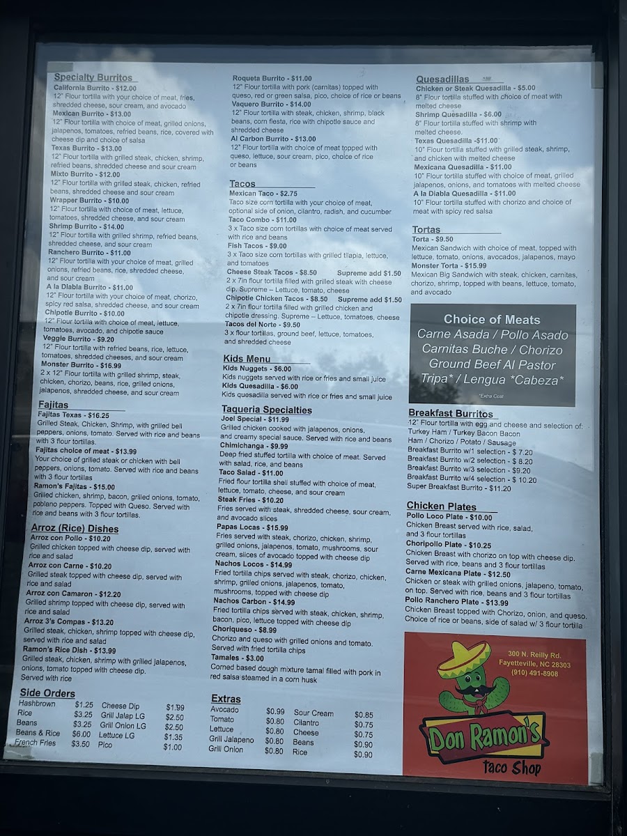 Welcome to Don Ramon's Taco Shop, a culinary gem nestled in Fayetteville, NC. This taco shop is not just a place to eat; it’s an experience. The menu is a delightful tapestry of Mexican flavors, featuring an array of dishes such as burritos, tacos, tortas, and fajitas, each made to order for maximum freshness.